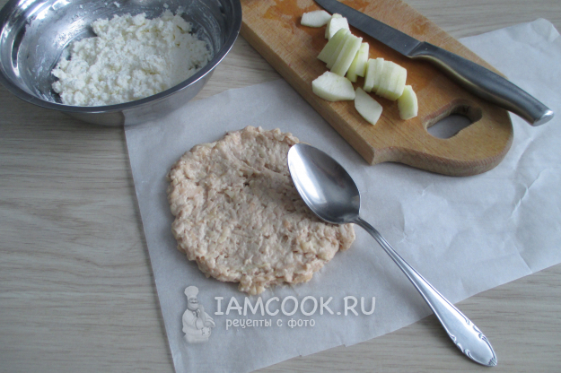 Тесто из яблок влажное и липкое, поэтому надо хорошо смазать руки растительным маслом. Быстро замесите тесто, оно не получится привычным однородным. Это практически невозможно...