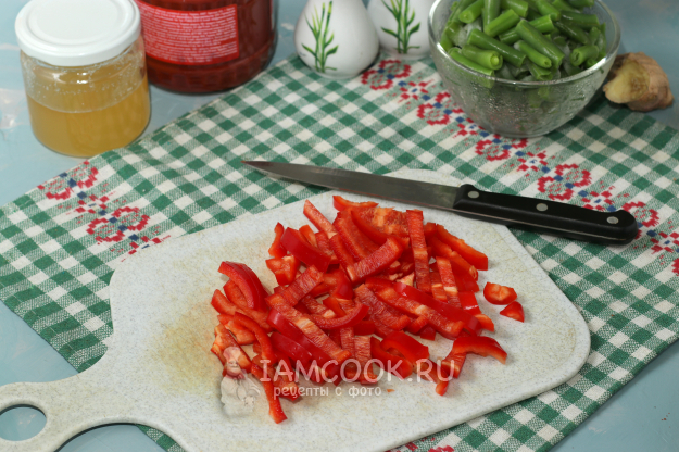 Также нарезать сладкий перец.