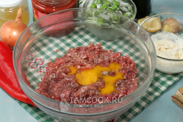 Мясной фарш выложить в миску, добавить небольшое яйцо, посолить и поперчить. Отдельно в пиале смешать манку и сметану, оставить на 15 минут для набухания.