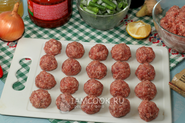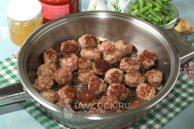 Предлагаю вам вкусное сытное блюдо в виде фрикаделек с овощами в кисло-сладком соусе, которое отлично дополнит любой гарнир. Рецепт в оригинале был рассчитан на килограмм фарша, но поскольку едоков у нас в семье всего трое, я решила приготовить из половины ингредиентов. Фрикаделек получилось достаточно, а вот соус был таким вкусным, что мне его оказалось маловато. Если вы любите мясо с подливой, то советую увеличивать количество ингредиентов, кроме фарша, вдвое.
