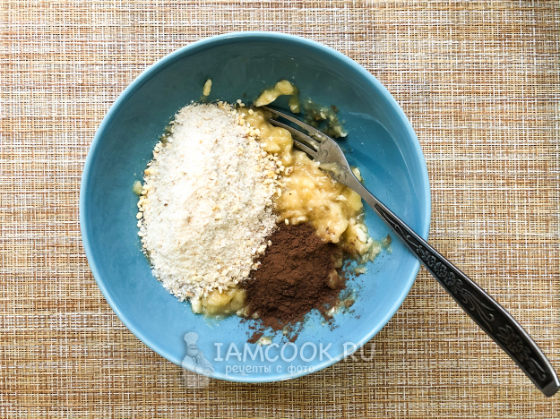 Измельченные ингредиенты соедините с какао и тщательно все перемешайте до однородной массы.