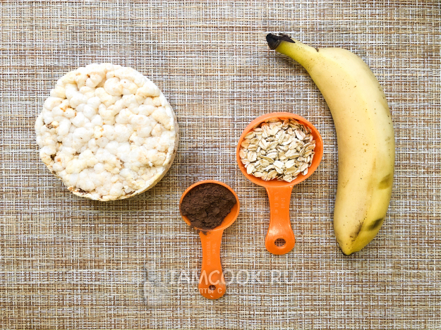 Для приготовления ПП пирожного «Картошка» из хлебцев и банана возьмите следующие ингредиенты.