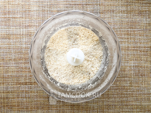 В блендере в муку измельчите рисовые хлебцы и овсяные хлопья.