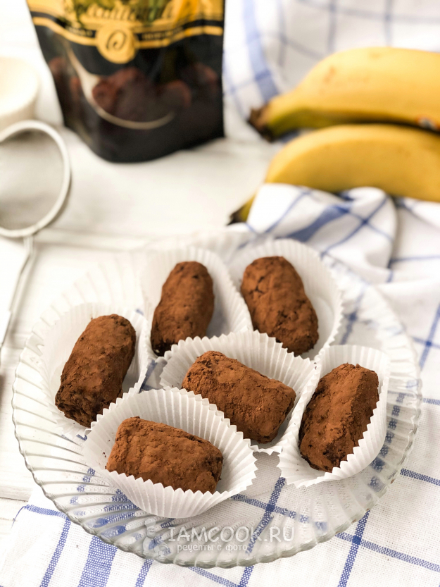 По консистенции и плотности этот десерт действительно получается, как пирожное «Картошка». И никакого сахара не нужно добавлять, сладости банана более чем достаточно. Получается очень вкусный и необычный десерт.