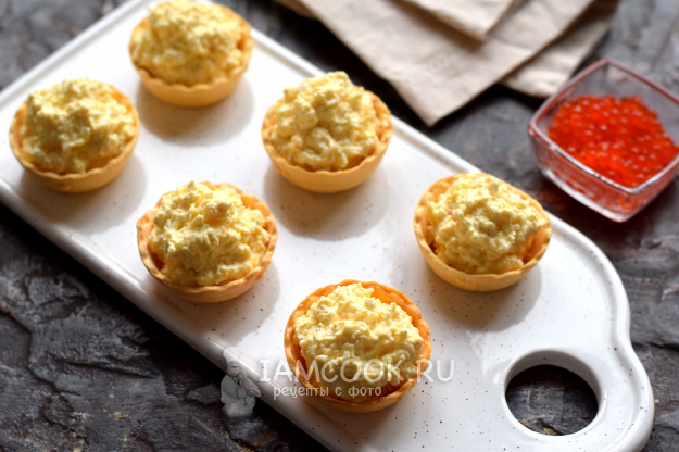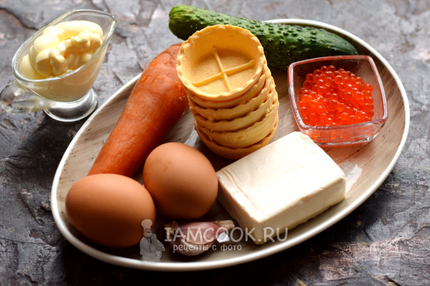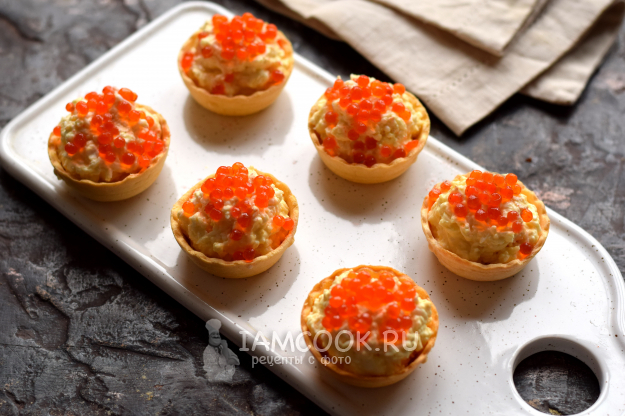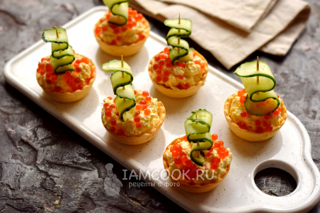 Сверху выложите красную икру в количестве 1 ч.л.