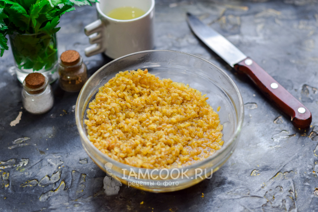 Булгур промыть несколько раз в прохладной воде.