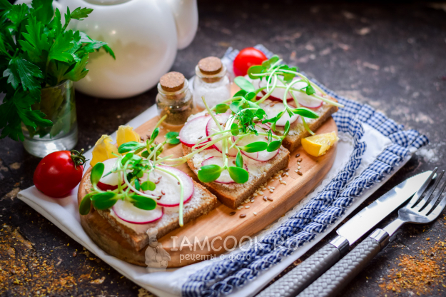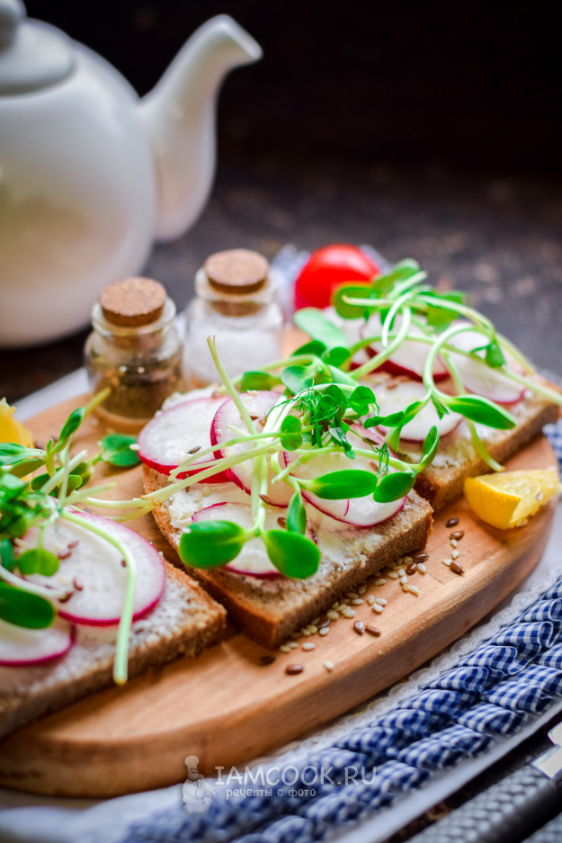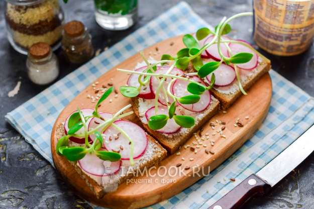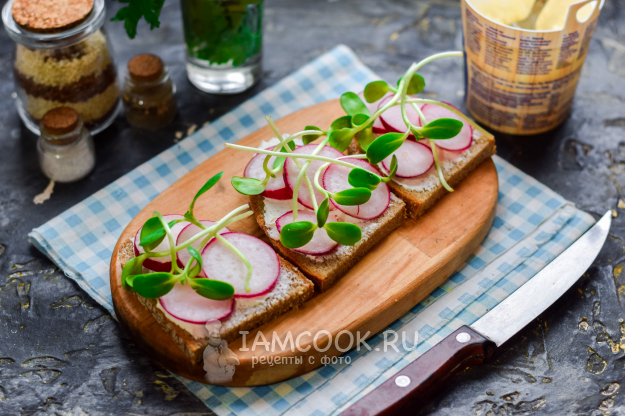 Предлагаю вам приготовить легкие и свежие бутерброды с редисом и микрозеленью, которые прекрасно подойдут в качестве перекуса. Такие бутерброды вкусно подавать с чашечкой кофе или ароматного чая. По желанию, сливочный сыр можно посыпать сухим чесноком и черным молотым перцем – получится более яркий вкус. Также вы можете добавить любой по вкусу мясной деликатес или сыр – как вам нравится.