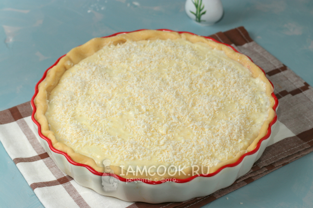 Духовку разогреть до 190 градусов и выпекать пирог 30-35 минут, пока не зарумянится верх.