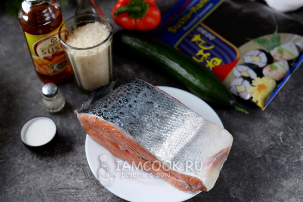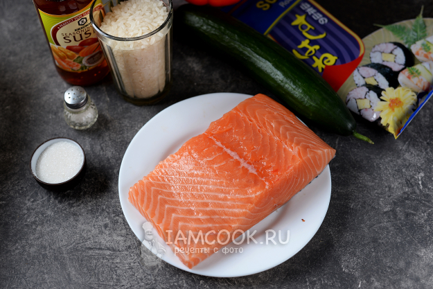 Рис промойте несколько раз, вода должна быть прозрачной. Залейте водой на 2 см выше крупы, поставьте на сильный огонь. Как только закипит, сразу сделайте самый тихий огонь, накройте казан плотно крышкой и варите рис 15-17 минут. Дальше выключите плиту, положите между казаном и крышкой бумажные полотенца, оставьте еще на 15 минут. За это время приготовьте заправку. Смешайте в пиале рисовый уксус, соль и сахар, поставьте на несколько секунд в микроволновку, нужно чтобы уксус немного нагрелся и кристаллы соли и сахара растворились. Влейте заправку в рис, аккуратно перемешайте снизу вверх.
