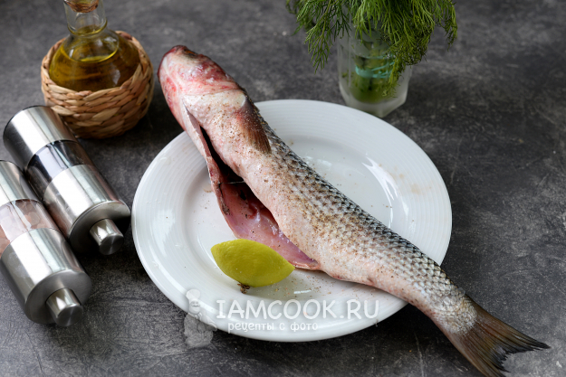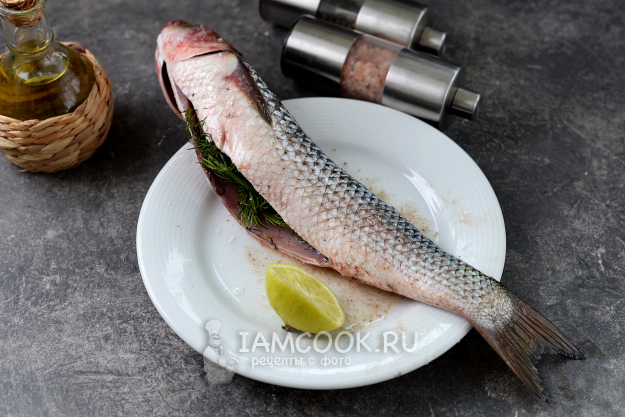 Рыбу очистите от чешуи и внутренностей, удалите жабры и черную пленку внутри брюха. Тушку посолите и поперчите по вкусу, полейте лимонным или лаймовым соком.