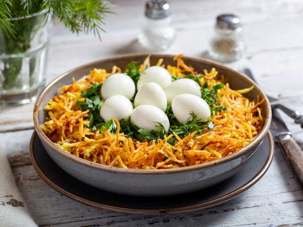 Яйца отварите заранее, остудите полностью. Из банки с горошком слейте жидкость.