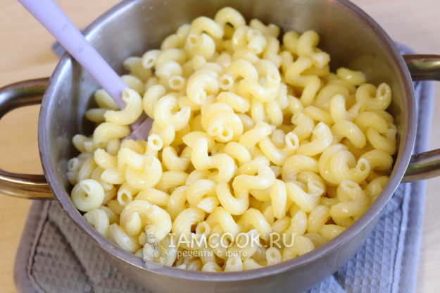 Пасту отвариваем в 1,5 литрах подсоленной воды согласно инструкции на упаковке до состояния аль денте. То есть макароны на данном этапе должны почти дойти до готовности, а не развариться/развалиться.