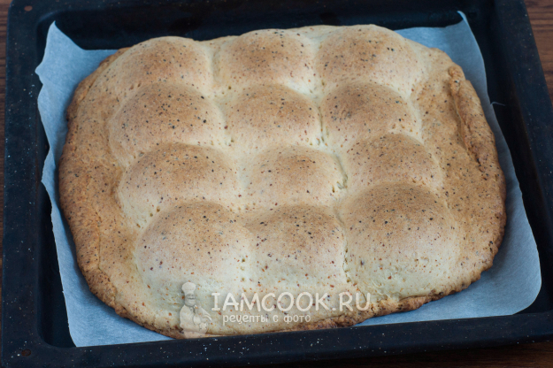 Готовый пирог выньте из духовки, остудите и посыпьте сахарной пудрой.