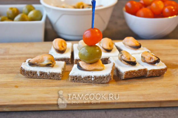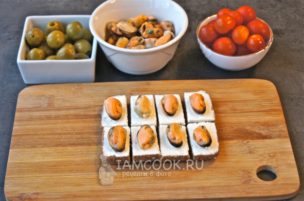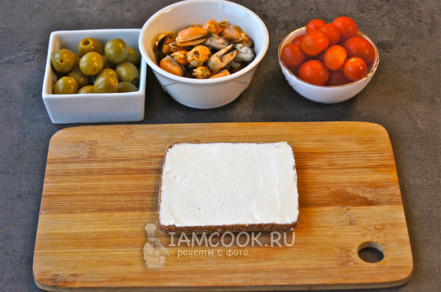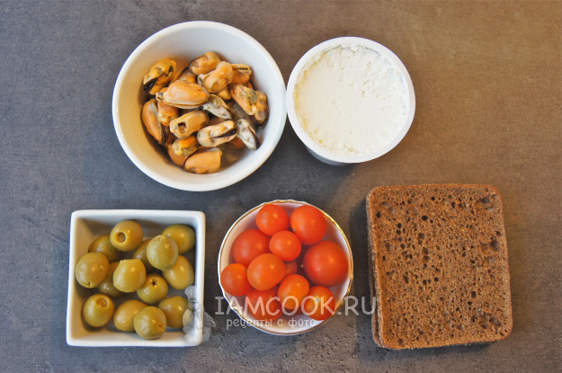 Итак, для начала подготовьте все необходимые продукты для канапе с мидиями.