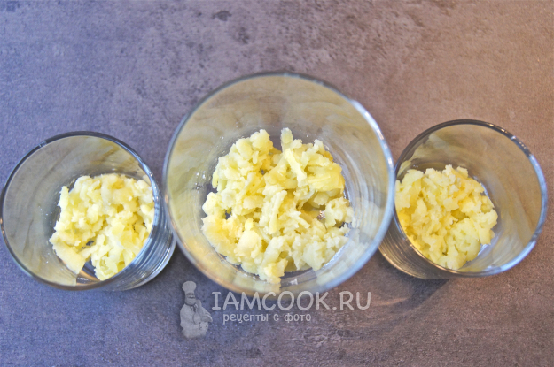 Очистите овощи, натрите на крупной терке все по отдельности. Первым слоем выложите картофель.