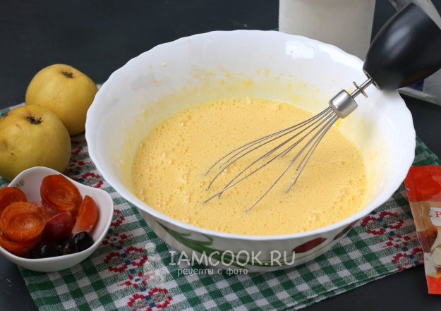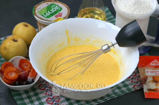 Добавить в смесь растительное масло и йогурт, продолжать взбивать.