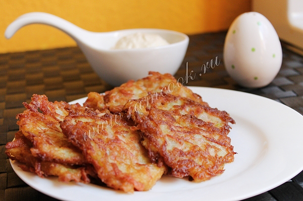 Готовые оладьи укладываем на бумажную салфетку. Подаем со сметаной.