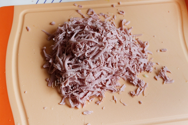 Колбасу тоже надо натереть на терке, лучше взять молочную без жира.