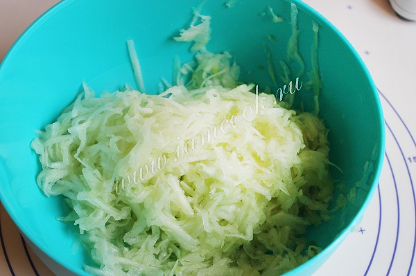 Итак, натрем 2 кабачка. Если у вас крупный или немолодой кабачок, то необходимо удалить семена.