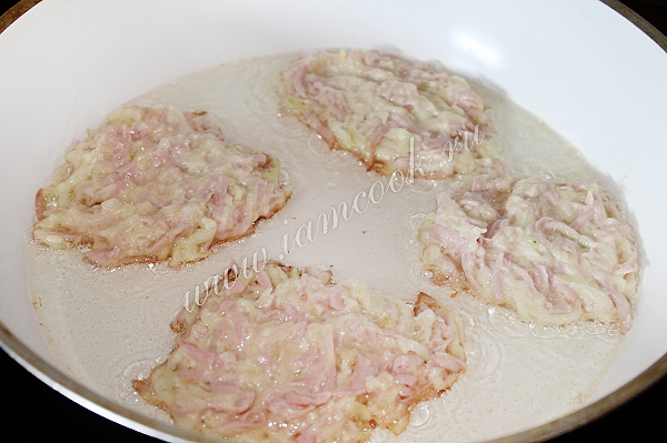 Еще пару фотографий кабачковых оладьев с колбасой.