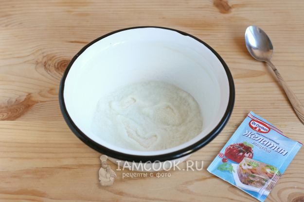Отольем 50 мл молока в отдельную миску, добавим к нему необходимое количество быстродействующего желатина и оставим на 1-2 минуты, чтобы желатин разбух. Как разбухнет, прогреем массу до 55-60 градусов и отставим.