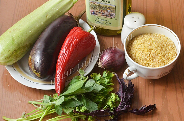 Для приготовления теплого салата с булгуром Вам потребуются следующие продукты:
