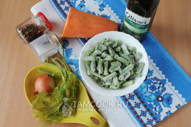 Итак, возьмите продукты для приготовления стручковой фасоли на пару.