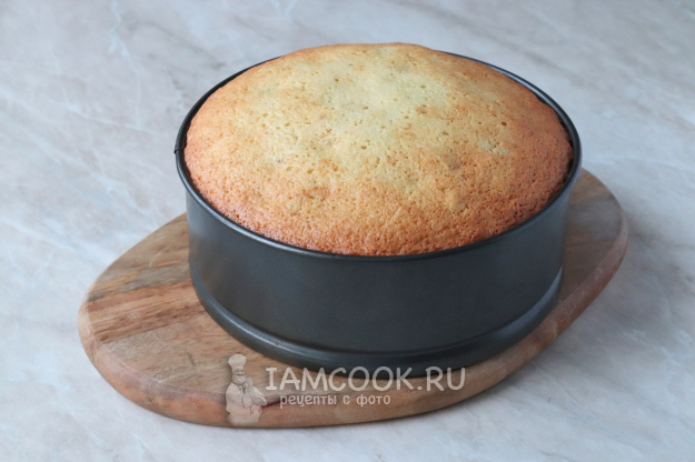 Отправьте бисквит в разогретую до 180 градусов духовку на 30-35 минут. Точное время приготовления будет зависеть непосредственно от вашей кухонной техники, ориентируйтесь по цвету выпечки, но при этом первые 15-20 минут дверцу духовки лучше не открывать, иначе корж не подымется.