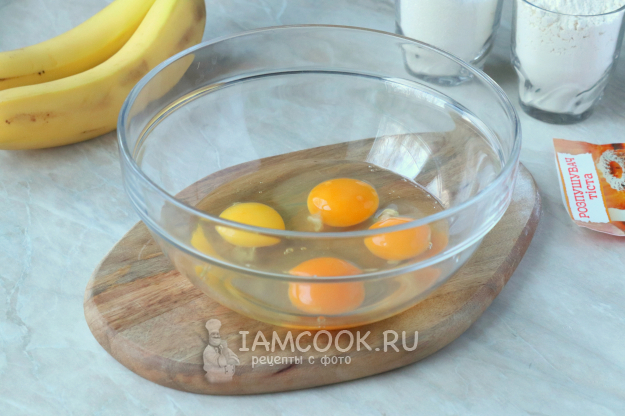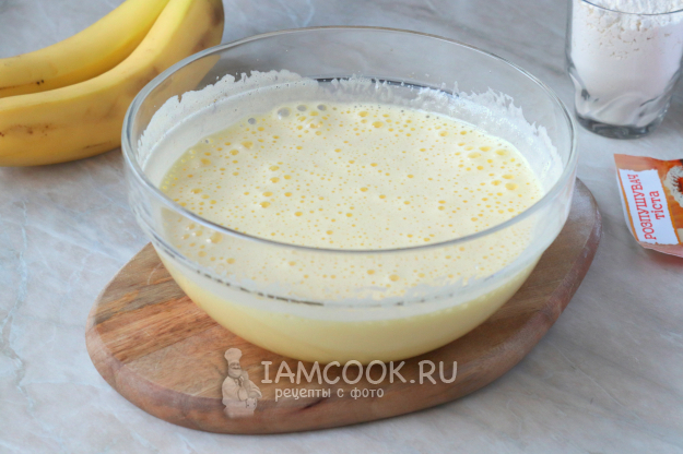 Для приготовления бананового бисквита в духовке подготовьте продукты по списку к рецепту.