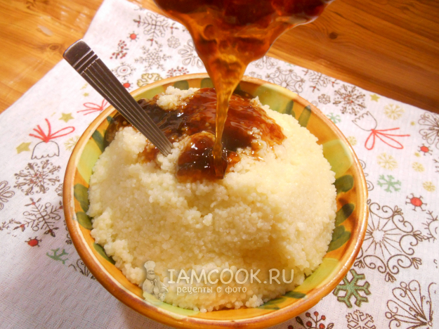 Теперь дадим немного остыть нашей основе и заправляем её мёдом, я добавила 2 ст.л., получилось не очень сладко.
