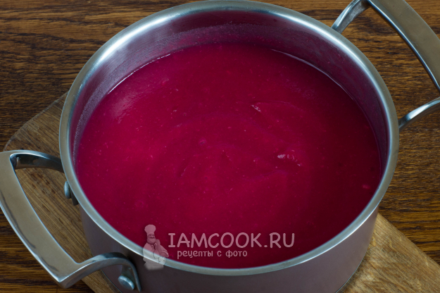 С готовой свеклы слейте половину отвара в отдельную емкость. Взбейте свеклу с оставшимся отваром в однородное пюре, если необходимо - добавьте еще немного отвара.