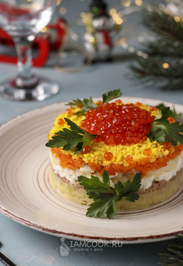 Всё, салат с тунцом и красной икрой готов к подаче.