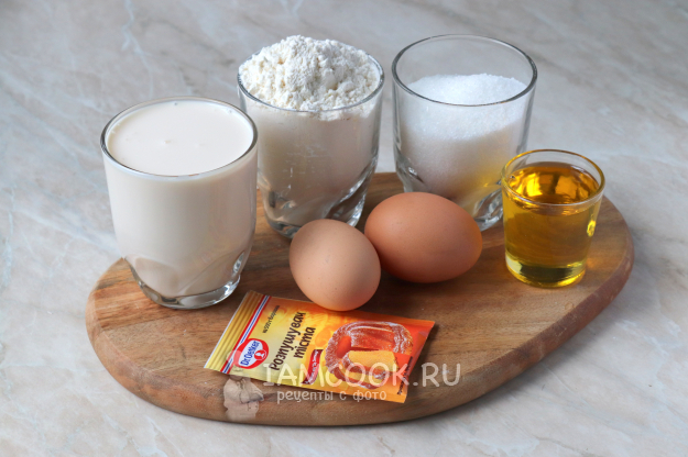 Для приготовления пончиков на ряженке подготовьте продукты по списку к рецепту.