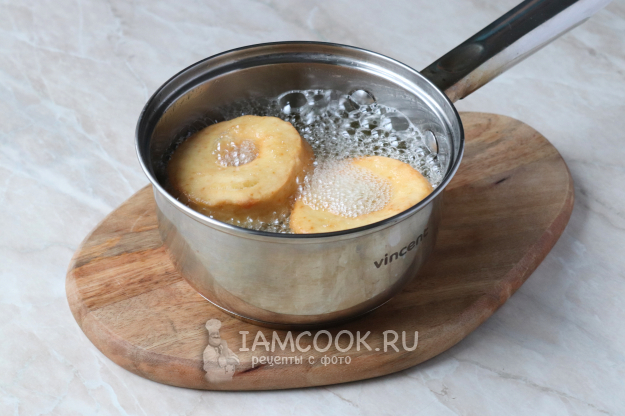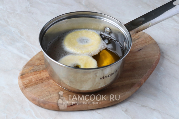 В подходящем сотейнике/кастрюле раскалите растительное масло и небольшими порциями выложите заготовки.