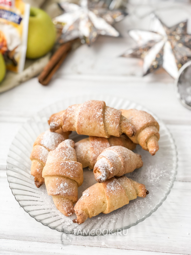 Творожные рогалики с яблочной начинкой готовы, приятного аппетита.