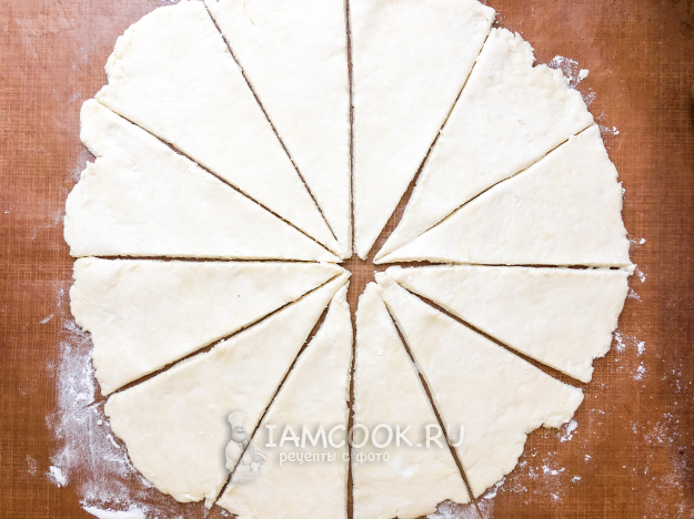 Поверхность припылите мукой и раскатайте тесто в круг толщиной не более 5 миллиметров.