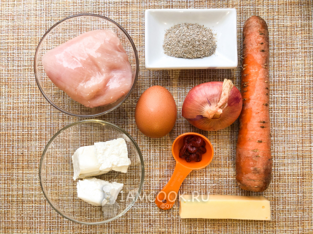 Для приготовления куриной запеканки с творогом возьмите следующие ингредиенты.