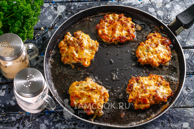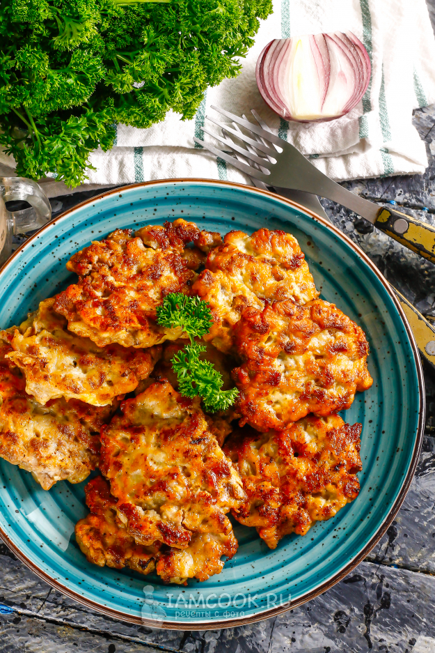С помощью силиконовой лопатки и вилки переверните каждую порцию на другую сторону и обжарьте такое же количество времени. После переворачивания мяса сковороду можно накрыть крышкой, чтобы блюдо пропаривалось внутри при жарке.