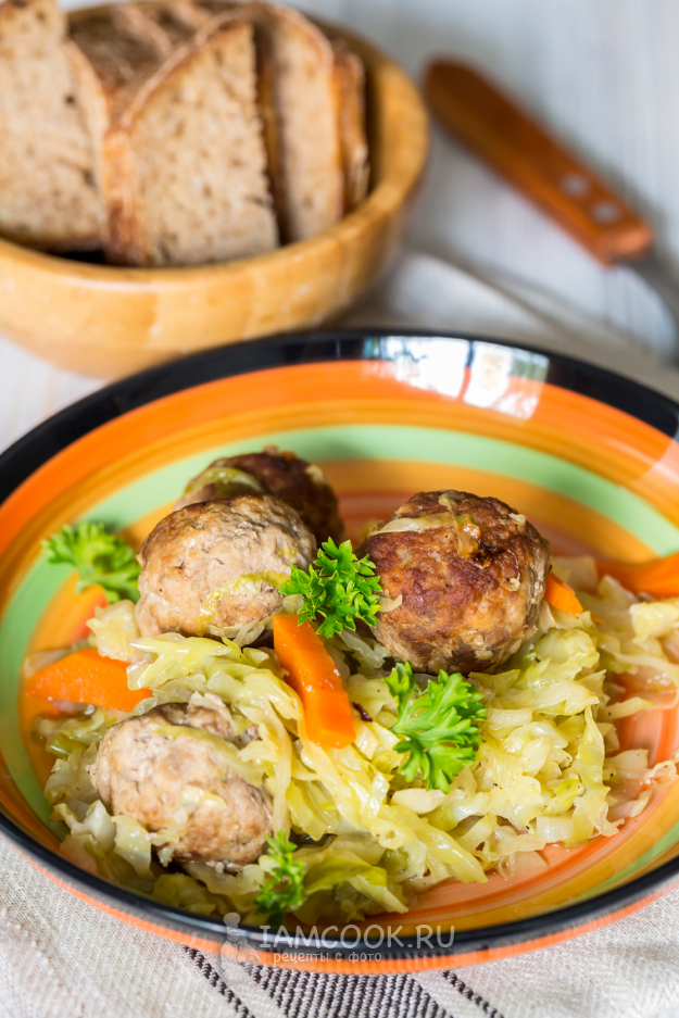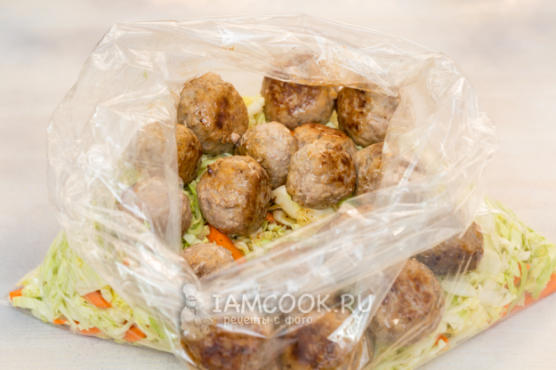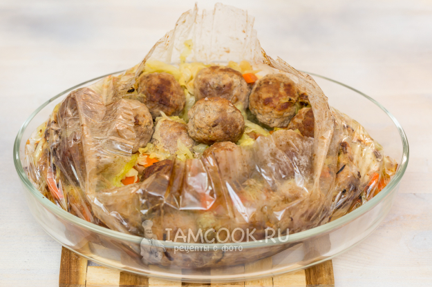 Капуста с фрикадельками в рукаве готова.