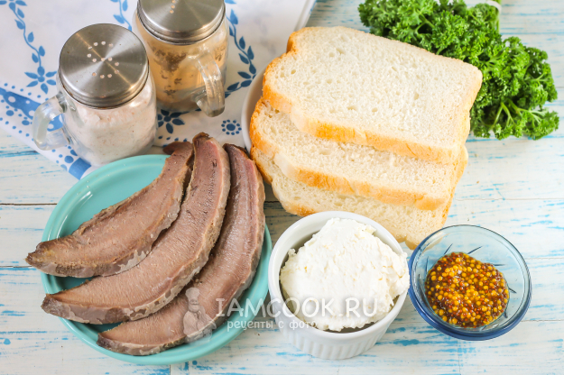Подготовьте необходимые ингредиенты для бутербродов с языком и творожным сыром и начнем кулинарить!