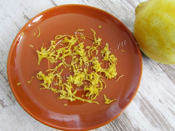 Лимон тщательно вымойте и с помощью мелкой терки снимите цедру.