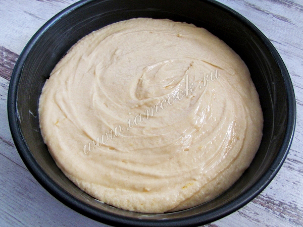 Форму для выпечки смажьте сливочным маслом, присыпьте мукой и выложите тесто.