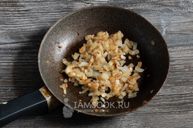 Обжариваем лук в небольшом количестве растительного масла до золотистости или даже коричневатости.