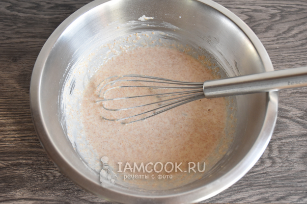 В сухие ингредиенты ввести жидкие и тщательно перемешать до получения однородного теста. Отставить тесто на 10 минут.