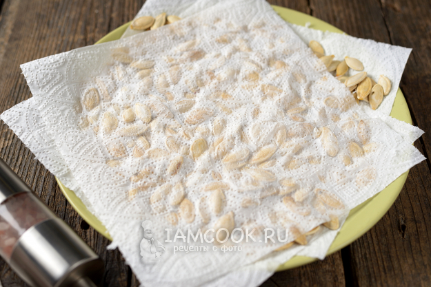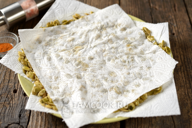 Выложите семечки на слой бумажных полотенец, желательно в один слой.