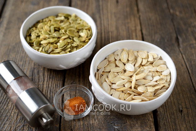 Подготовьте семечки - в кожуре и очищенные.