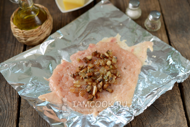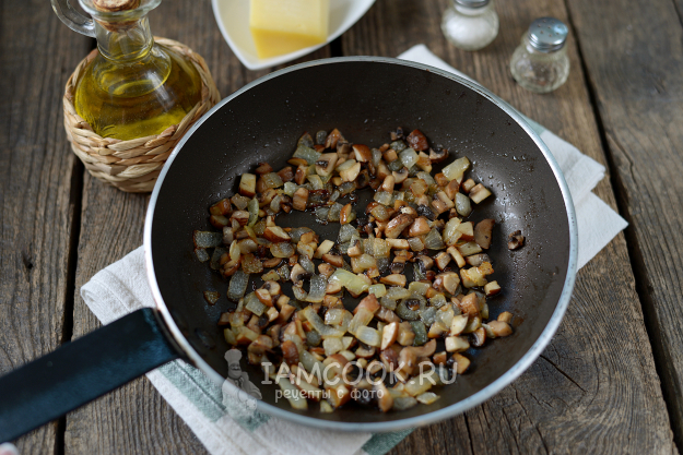 В середину положите пару ложек обжаренных грибов.