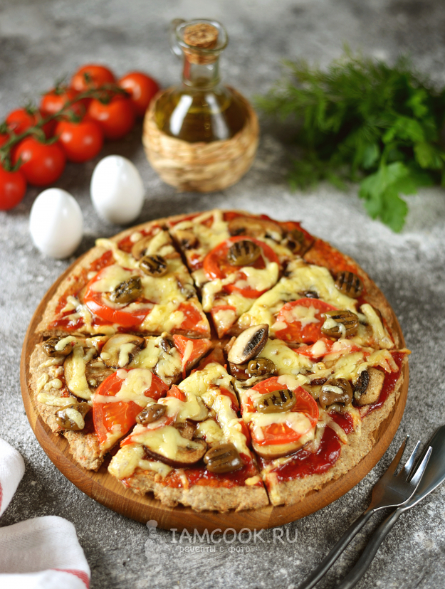 Поскольку тесто у нас "правильное", то начинку я сделала из слегка обжаренных грибов, помидоров, оливок-гриль и сыра. Это получилось достаточно вкусно.