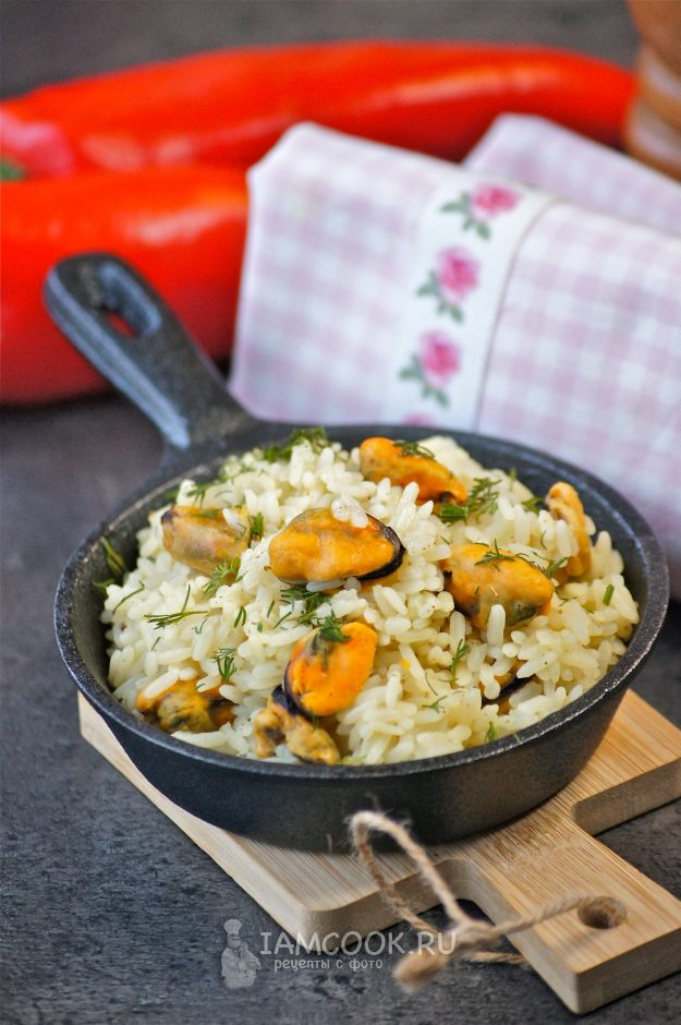 Вкусный, ароматный рис с мидиями готов.