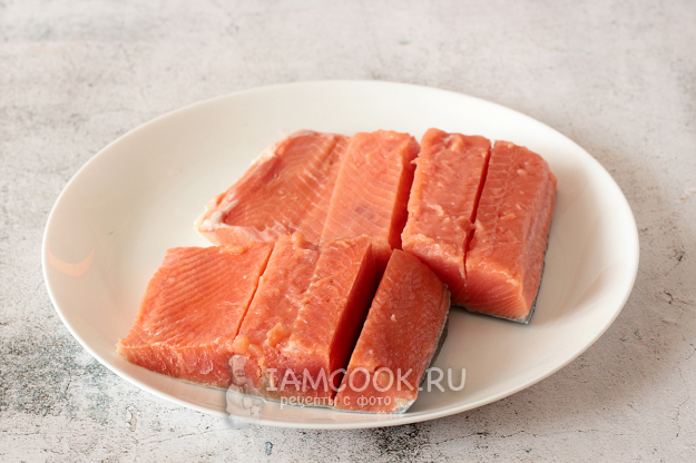 Очищенную рыбу слегка надрежьте, не прорезая кожу. Наверно, можно оставить рыбу целой, но мне так захотелось, чтобы маринад проник во все клеточки и закоулочки, тем самым обогатив вкус кижуча.